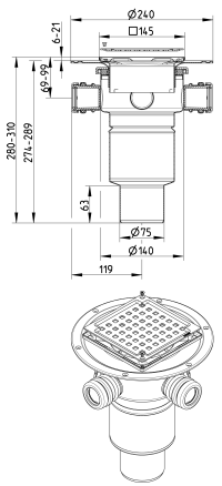 Allerede når kloakmesteren laver rør og sætter afløbet af, er det vigtigt, at han kender dine ønsker til placering.Blücher Waterline design firkantet afløb Ø75mm lodret udløb med 3stk afproppede sideindløb med mulighed for tilslutning af enten Ø32 eller Ø40mm rør . Justerbar firkantet afløb for montering i beton- og klinkegulve.