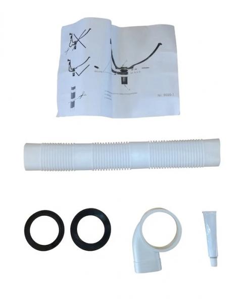 Overløbsslange samt adapter og pakninger til pungvandslås, passer til alle Dansani marmorvaske.