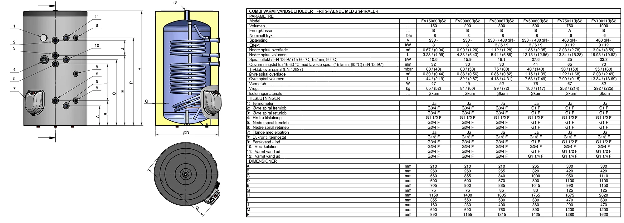 Fritstående solvarmebeholder med 2 spiraler og el-patron. Effektiv fritstående solvarmebeholder / vandvarmer fra ELDOMINVEST Hurtig og nem installation. En ideel solvarmebeholder til at dække hele husets behov for varmt vand eller til yderligere opvarmning af forvarmet vand, f.eks. fra 30 °C vand fra buffertank, til 65 °C vand til opvasken. Beholderen har 2 spiraler som gør det muligt at kombinere varmekilder. Den øverste spiral er til pillefyr eller en anden kedel. Den nederste spiral er til solvarme. Det giver gode muligheder for altid at udnytte den mest optimale og billigste varmekilde, uanset sæson. Mere end 85mm tyk isolering i polyurethanskum sikrer minimalt varmetab og god energibesparelse. Den gode isolering har givet beholderen energiklasse B. Beholderen er emaljeret og rystbeskyttet for at sikre lang holdbarhed. Vi anbefaler tilkøb af sikkerhedsamatur - 8 bar til alle varmtvandsbeholdere.