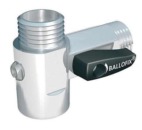Broen Ballofix T-stykke med kontraventil 1/2". Dobbelt afspæring. Sort håndtag. Krom