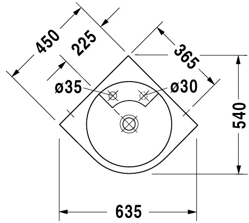 Duravit Architec 64 håndvask t/væg - Hjørne - Uden overløb Elegant hjørnevask fra Duravit med rund indre kumme og forlokket hul til indbygget sæbedispenser. Dette er et tidløst valg - håndvasken fra Duravit vil aldrig gå af mode og kan sammensættes med badeværelsestilbehør og -møbler, som du har lyst.
