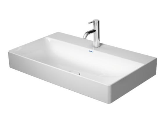 Duravit DuraSquare 80 bowlevask op til væg - 1 hanehul - Ingen overløb - Wondergliss Med Durasquare fra Duravit er du sikker på at få et badeværelsesprodukt som er moderne, i høj kvalitet og stilrent. Denne Durasquare håndvask er ingen undtagelse med sine ydre skarpe linjer, og bløde rundinger på indersiden. Denne variant er med Wondergliss, Duravits overfladebehandling, som giver en ultraglat overflade, hvor skidt og bakterier har været ved at sætte sig fast. Resultatet er en håndvask der er nemmere at rengøre, og som holder sig flot i længere tid. Specifikationer: