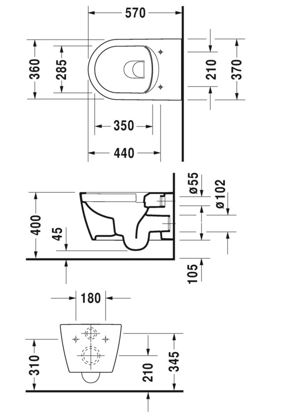 Duravit Me by Starck Rimless væghængt toilet Duravit Me toilettet er designet af den hæderkronede designer Philippe Starck, som med stor succes har designet toiletter for Duravit gennem mange år. Toilettet er designet således at monteringsbeslagene er skjult og toilettet er desuden uden skyllerand (rimless), hvilket gør skålen mere hygiejnisk. Mål: 360 x 570 mm Husk at tilkøbe passende toiletsæde og en indbygningscisterne samt betjeningsplade/skylleknap hertil (se også relaterede produkter nedenfor). Montage på eksisterende indbygget cisterne:
