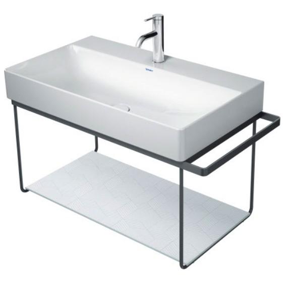 Duravit DuraSquare 80 stativ til håndvask - Væghængt - Mat sort Løft din Duravit håndvask til nye højder med en metalkonsol til montering på væggen. Med denne DuraSquare får du en moderne og anderledes partner til din håndvask, som giver et helt andet udtryk til badeværelset end et traditionelt møbel. På den ene side er en håndklædeholder integreret. Specifikationer: