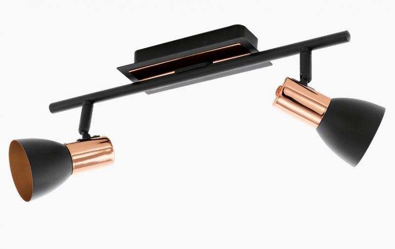 EGLO BARNHAM SPOT LED 2X3,3W KOBBER/SORT ; MÅL: L:395 B:70 ; FATNING: GU10-LED ; MAX WATT: 2 X 3,3W ; INKL. LYSKILDE