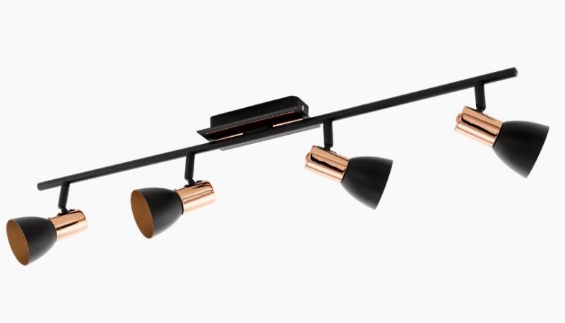 EGLO BARNHAM SPOT LED 4X3,3W KOBBER/SORT ; MÅL: L:780 B:70 ; FATNING: GU10-LED ; MAX WATT: 4 X 3,3W ; INKL. LYSKILDE