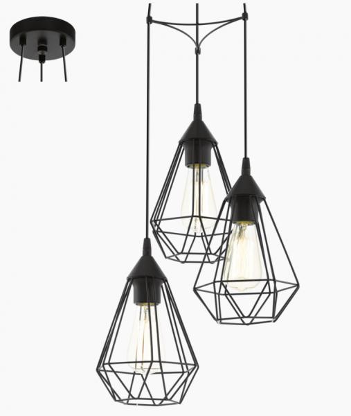 EGLO TARBES PENDEL 3L KLYNGE Ø175 SORT ; MÅL: H:1100 Ø:310 ; FATNING: E27 ; MAX WATT: 3 X 60W ; EKSKL. LYSKILDE