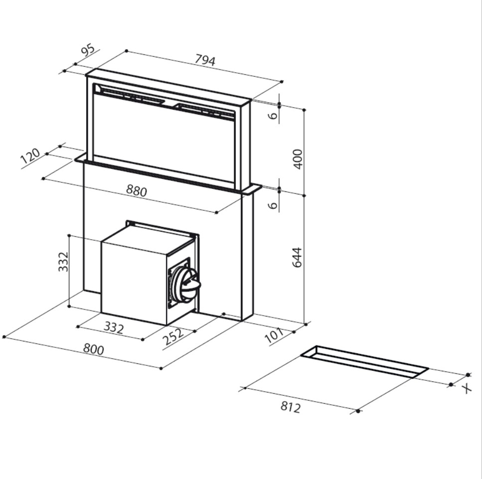 Eico Fabula W PLUS indbygget emhætte t/ bordplade - Rustfrit stål m/hvid glas Eico Fabula W PLUS, Emfang for indbygning i bordplade med intern motor. Specifikationer: