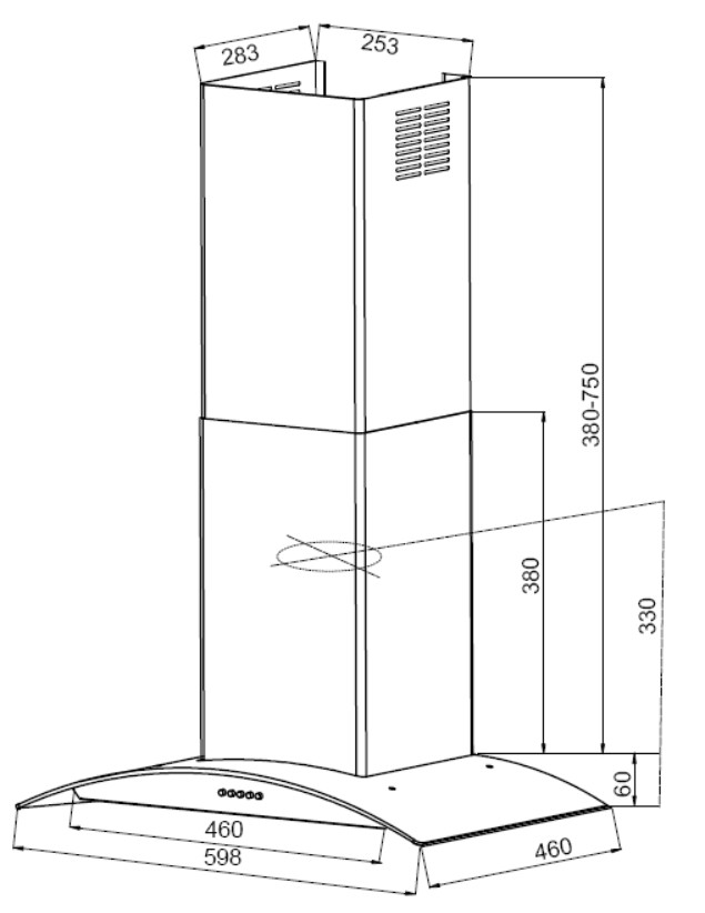Eico Torino 2 P 60 emhætte til vægmontering - Rustfrit stål Eico Torino 2 P 60, Vægmonteret emfang, Med intern motor.