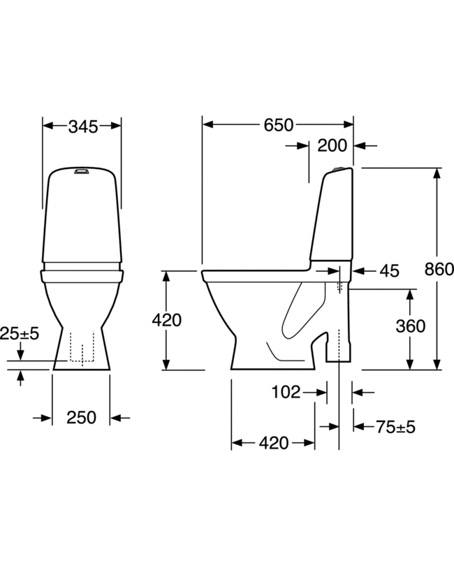 Fremstillet i hygiejnisk, holdbart og tætsintret sanitetsporcelæn.