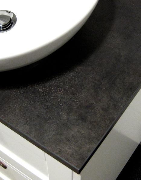 Hafa Eden bordplade 61 - Dark Grey Stone Bordplade i mørkegråt, stenmønstret laminat. Boring af huller til håndvask og blandingsbatteri udføres af installatøren alt efter håndvaskmodel og valg af placering. Mål: 610X465 |