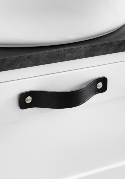 Håndtag i ægte sort eller mørkebrunt læder.