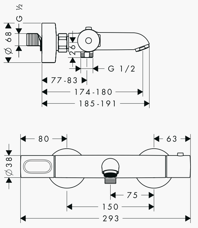 AXOR Citterio M brusetermostat t/kar inkl. rosetter og forskruninger
