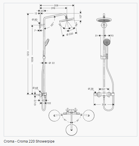 Og så er Hansgrohes Croma 220 Showerpipe oven i købet let at holde ren pga. begge bruseres QuickClean antikalk-funktion og den glatte, rengøringsvenlige bruserslange.
