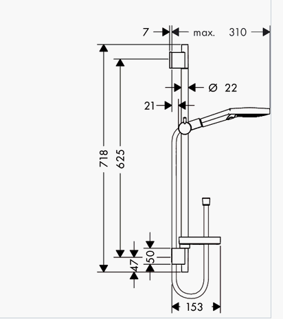 består af: håndbruser, bruserstang, bruserslange, glider, sæbeskål