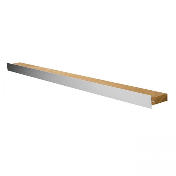 Lang gallerihylde fra Hoigaard i en kombination af massivt træ og aluminium.