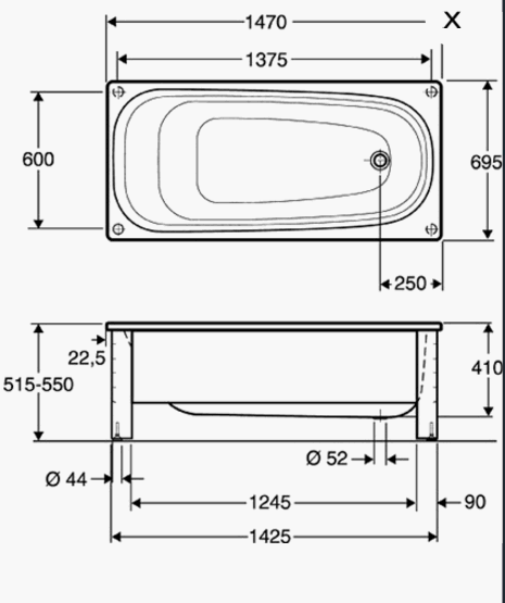 Ifö Caribia BK-HF 15 halvfront og stativ - Hvid - UDEN KAR |