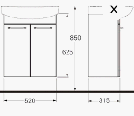 Ifö Spira 57 møbelpakke m/låger - Hvid Komplet møbelpakke i hvid til det mindre badeværelse eller til gæstetoilettet. I møbelpakken indgår håndvask og fabriksmonteret underskab med en flytbar hylde. Softclose lukkende låger og greb (178 mm) i mat krom. Skabskorpus er fremstillet af fugtsikker spånplade og lågerne af fugtsikker lakeret MDF. På højre side af underskabet findes en krog til f.eks. håndklæde Blandingsbatteri og vandlås indgår ikke. Specifikationer: