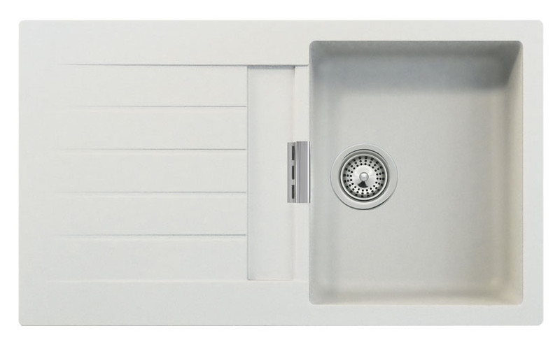 Intra Granite Cristalite køkkenvask i granit materiale. Stor vask i cristalite og kumme + afløbsbakke. Leveres med løft-op-ventil og vandlås.