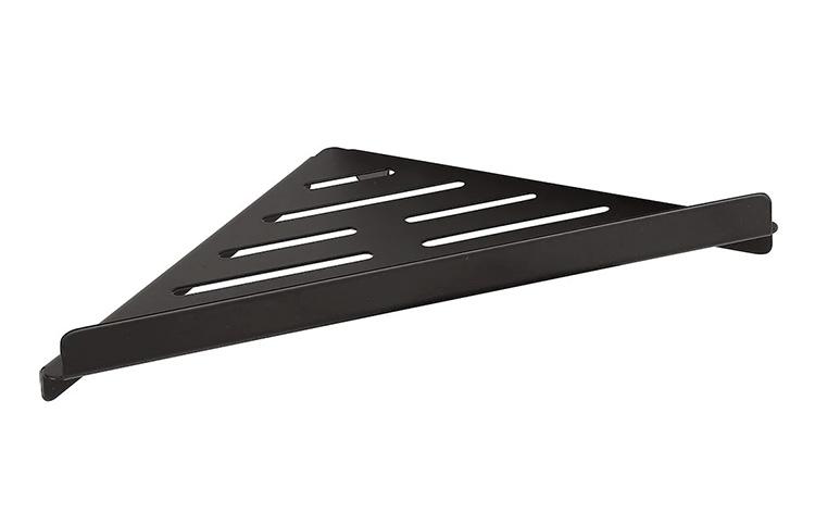Kriss hjørnehylde til bad - Mat sort Elegant opbevaring til badet i form af en strømlinet brusehylde fra Kriss Athena. Med helt rene linjer og slankt design er dette et oplagt valg, når badeværelset skal stå helt skarpt og flot. Brusehylden har en kant, der forhindrer at shampooflasker vælter og sæbebarer glider af hylden. Med skjult montage får du ikke en mere enkel brusehylde til dit badeområde. Specifikationer: