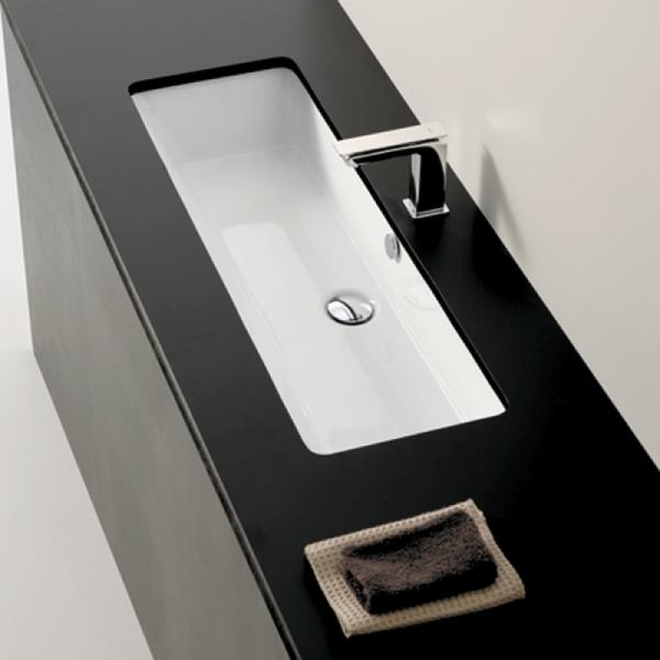 Lavabo Gea 90 håndvask t/underlimning - Uden hanehul - Med overløb Stor porcelænsvask til underlimning i firkantet og elegant design uden hanehul. Specifikationer: