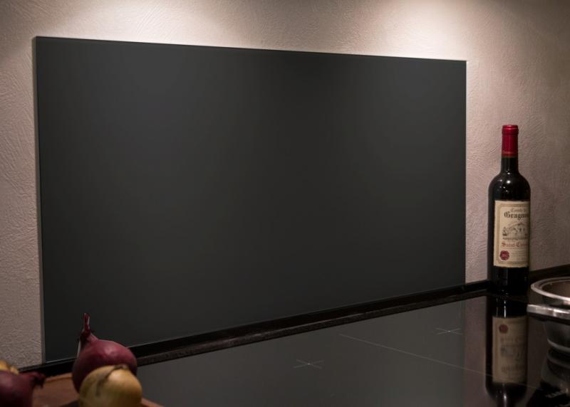 Firkantet stænkplade til køkken - 60 x 30 cm - Mat sort glas Denne stænkplade er en praktisk tilføjelse til køkkenet. På trods af det praktiske element, så har pladen et simpelt og elegant udtryk. Stænkpladen har en rektangulær form, og den har til formål at beskytte væggen fra stænk ved kogeplade eller køkkenvask. Pladen er af sort hærdet glas, hvilket gør den nem at tørre over med en fugtig klud efter madlavning eller opvask. Monteringen og vedligeholdelsen er ligeledes let, da pladen blot limes på væggen.