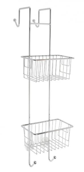 Stilet brusehylde til glasbyggesten i forkromet stål. 2 store hylder, som er ideel til opbevaring af badeværelsesprodukter, som man ønsker lige ved hånden.