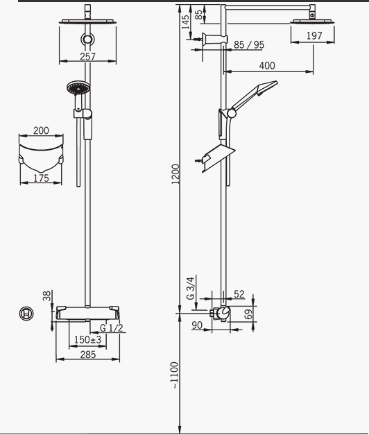 Termostatisk rain bruserarmatur med betjeningsvenlige greb. Brugervenlig omskifter og skoldningsspærre i grebet samt mængdebegrænser. Håndbruser med 3 stråletyper, for en mere komfortabel bruseoplevelse samt rengøringsvenlig anti-kalk si, bruserholder og vægholder. Hovedbruser: 257 x 197 mm