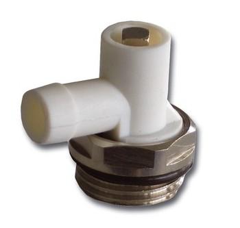 Aftapningsventil med O-ring, drejelig til radiator. Forkromet/hvid.