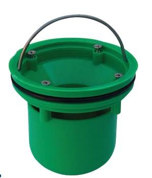 Grøn plast indbygningsvandlås til uskiftning i gamle - både plast og rustfri - eksisterende afløbsskåle på 75 eller 110mm.