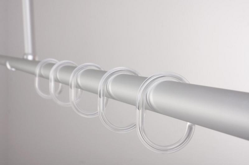Ridder Forhængsringe - 12 stk. - Transparent Disse forhængsringe bruges til ophæng af badeforhæng. Ringene er produceret af højkvalitetsplastik og leveres i en hvid finish. Forhængsringene passer til Ridder teleskopstang, og monteringen er nem og enkel.