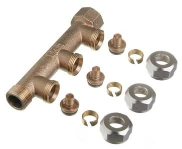 Roth fordelerrør 3 afgreninger x 15mm pex, Euro-red. Rødgods fordelerrør inkl. fordelerkoblinger