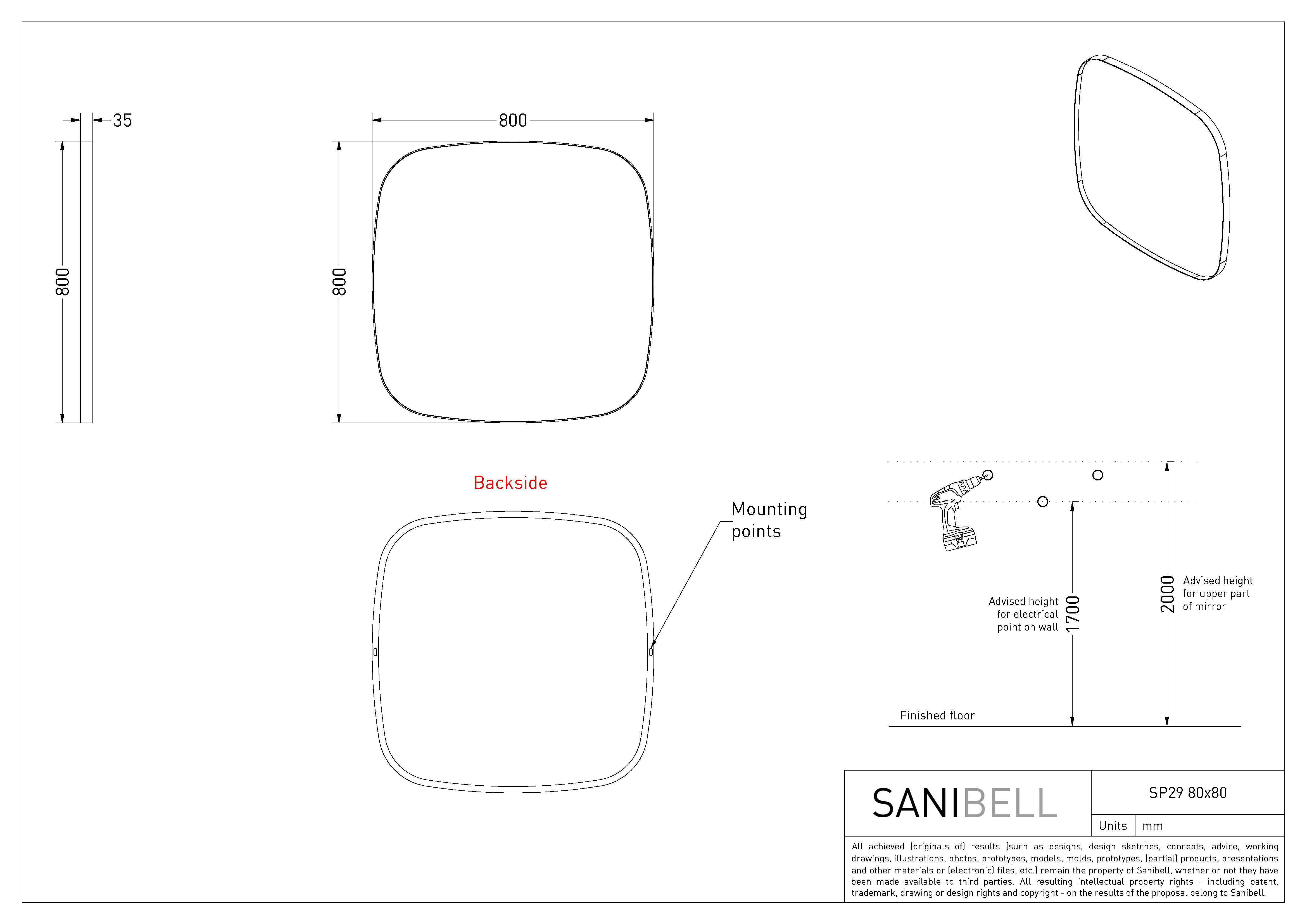 Sanibell Ink SP29 superellipse spejl m/ramme 80 x 80 cm - Børstet mat guld Minimalistisk spejl med ramme, som forfra er helt slank, men fra siden træder frem fra spejlets profil. Formen er superellipse og dermed ikke helt rund, og ikke helt firkantet. Et spejl på badeværelset, i soveværelset eller i entréen er en alletiders måde at skabe liv og bryde de linjer der ellers ofte præger hjemmet. Kombiner eventuelt spejlet med elegante væglamper, som kan være med til at skabe atmosfære, godt arbejdslys og understrege indretningsstilen. Specifikationer: