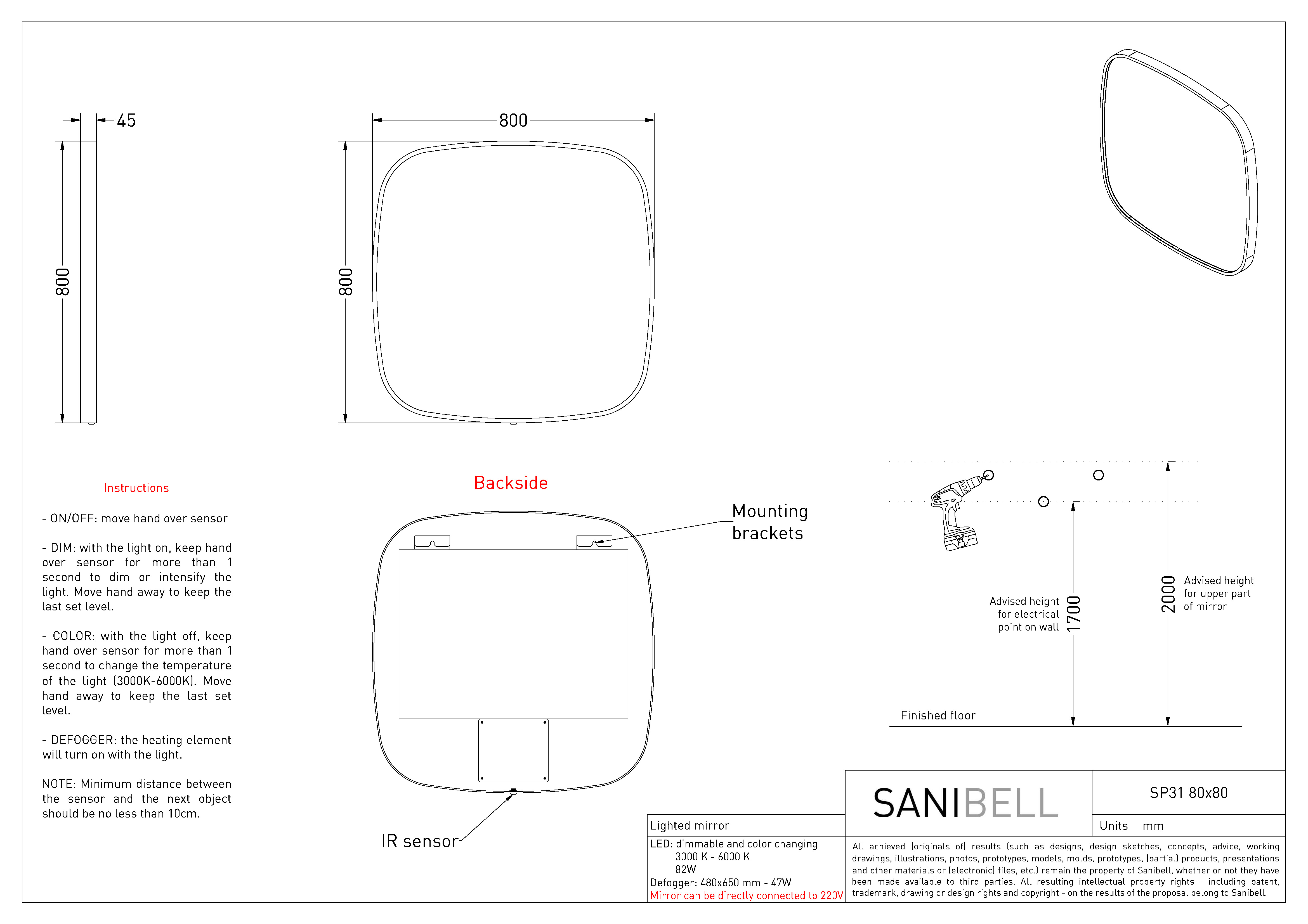 Sanibell Ink SP31 spejl m/lys, varme og sensor 80 x 80 cm - Gunmetal Superellipse-formet spejl fra Sanibell Ink med indbygget lys i rammen. Det eksklusive spejl har desuden indbygget memory funktion, så det husker forrige indstilling. Juster både lysets farve og styrke ved hjælp af den smarte touch-free sensorkontakt. Når du vælger dette spejl, kan du uden problemer bruge dit spejl, selv efter et langt, varmt bad, for spejlet har indbygget varme og er derfor dugfrit. Spejlet leveres i 6 flotte farver, så du kan fuldende indretningen på badeværelset med et spejl, der matcher både vandhane og badtilbehør. Specifikationer: