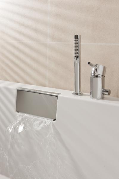 Strømberg Et-grebs armatur med håndbruser. Vandpåfyldning gennem overløb