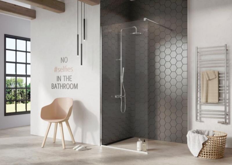 Elegant fast brusevæg Strømberg Font Walk-in bruseafskærmning 700mm fast væg m/100cm stang, frostet glas Højde 2000 mm Billedet viser med klart glas |