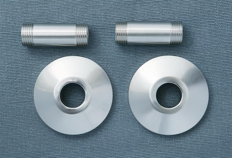 Strømberg tilslutningssæt 57mm, børstet stål. Passer til alle strømberg modeller. Specifikationer: 2 x ½ 57mm nippelrør 2 x ½ Rosetter Farve: Børstet stål.