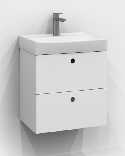 Svedbergs Intro 55 møbelsæt m/skuffer - Mat Hvid Intro er et badeværelsemøbel i metal, som tåler hård behandling, perfekt til sommerhus, udlejning mm. Ren og minimalistisk stil. Perfekt til de mindre badeværelser og specielt københavnerbadeværelser da møblet tåler vand. Faktisk kan det tåle at stå i selve bruseområdet. Fås i farverne mathvid, grafitgrå, sand og salvie. Låge med smidigt og dekorativt hulgreb. Leveres inkl håndvask.