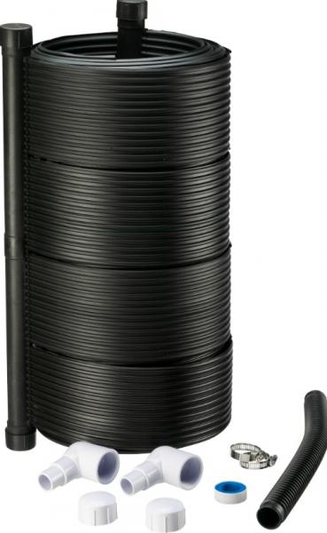 Leveres som komplet anlæg på 6,1 x 0,6 meter. Placér solfangeren på jorden, på et hegn eller evt. på taget. Flere anlæg kan kobles sammen. Vi anbefaler 2 stk, hvis din pool rummer omkring 25.000 liter.