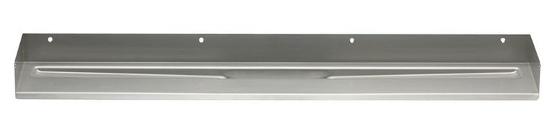 Afløbsarmaturet har tre vægflanger og en gulvflange, og er formgivet ud af et stykke kraftigt 1,5 mm rustfrit stål med bejdset overfladefinish.