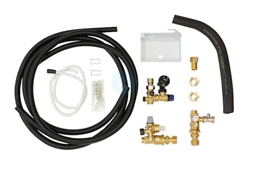 Tilslutningssæt, indeholder sikkerhedsventiler for varme/brugsvand samt manometer for anlægstryk
