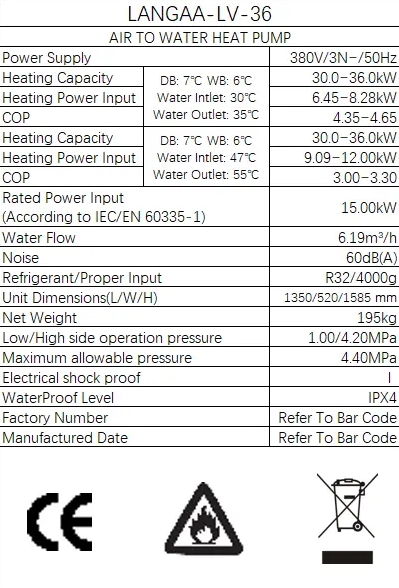 Langå Varmepumpe R32 - Luft til vand - 36kw