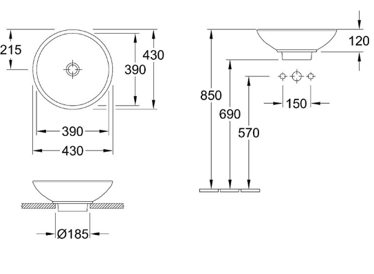 V&B Loop&Friends fritstående håndvask U/overløb - NB der skal  være afløb/rist i gulvet når man har vask uden overløb.