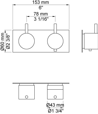 Vola Indbygningstermostat med løs afgangsmuffe Separat udløb Krom 16 3/4''RG/PEX