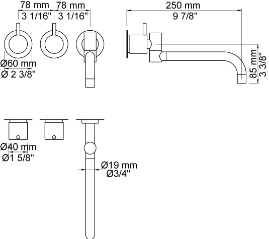 To-grebsblander med keramiske ventiler 600, 2 greb NR17, 250 mm dobbelt svingbar tud 0303 stk. 60 mm rosetter 001.