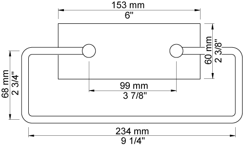 Vola Håndklædebøjle T15 forkromet, med bagplade. Centerafstand: 99mm Bredde: 234mm Højde: 108mm
