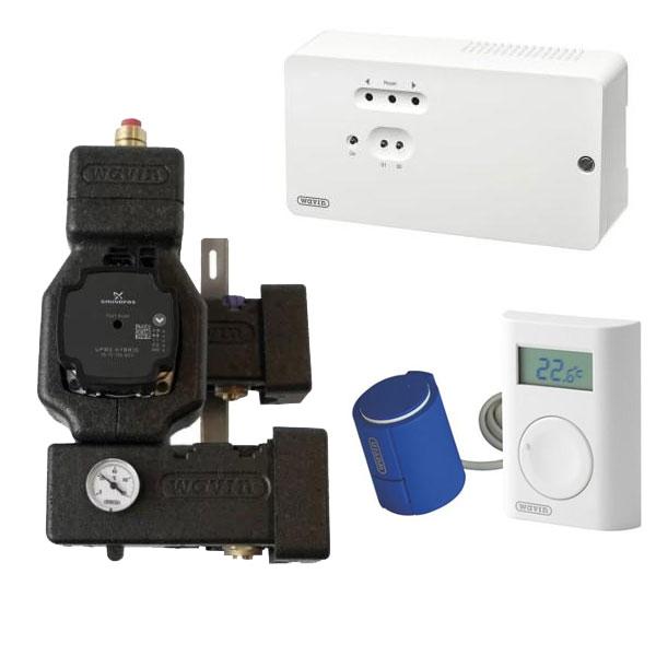 Wavin minishunt 1-rum AHC 9000 trådløs styring Komplet shunt til 1 rum med en rumtermostat. OBS: Varen er på lager - både til afhentning og dag-til-dag levering. Der medfølger 20 mm koblingssæt. Skal du bruge 16 mm rør eller anden størrelse, skal der tilkøbes koblingssæt - Se relaterede produkter. Pakken indeholder: