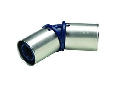 Wavin Tigris K1 press 45 grader vinkel - 50 mm t/u-bakker Tigris vinkel i PPSU, med preskappe af rustfrit stål. PPSU materialet er tryk,- og temperaturbestandigt, og giver et rørsystem som er sikret mod korrosion. Kan anvendes til varme,- og brugsvandsinstallationer. Fittings er med lækagefunktion og "garanteret utæt" ved manglende presning.