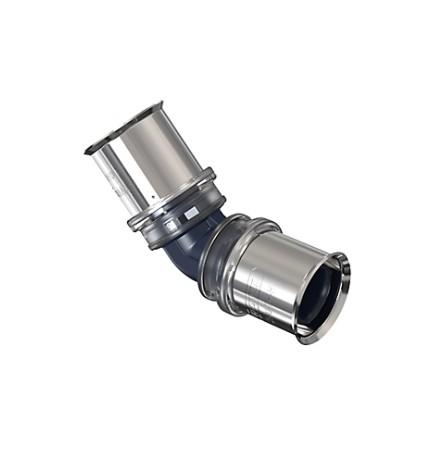 Wavin Tigris K5 vinkel 25 mm. 45 gr. WavinTigris K5 er et radialt presfittingsystem med flerlags rør og fittings i PPSU. De væsentligste installationsområder er brugsvand, radiatorforbindelser og gulvvarme. Alle Tigris fittings opfylder de specifikke krav for brugsvandsinstallationer, radiatorvarme og gulvvarmesystemer.